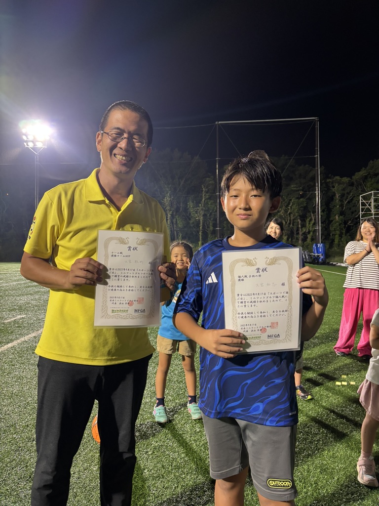 皆さん初めて体験するミニフットゴルフでしたが、練習タイムを経て本番ではメキメキと上達し、5歳のお子さんもママさんもお父さんも、ハンデなど一切なしの真剣勝負です。また今回は各種目の優勝者やMVPには協会より表彰もありということで、チーム戦も団体戦も非常に白熱した勝負となり大いに盛り上がりました❗