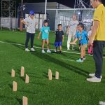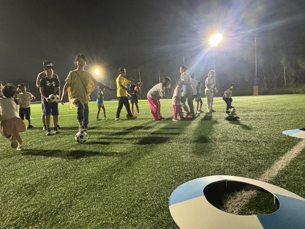今回はファミリーを中心に約30名の参加者がありました。ミニフットゴルフは、ホールインワンチャレンジ形式15m×4レーンをセッティングし、最初に練習タイムを設けた後は以下の内容で楽しみました❗⛳